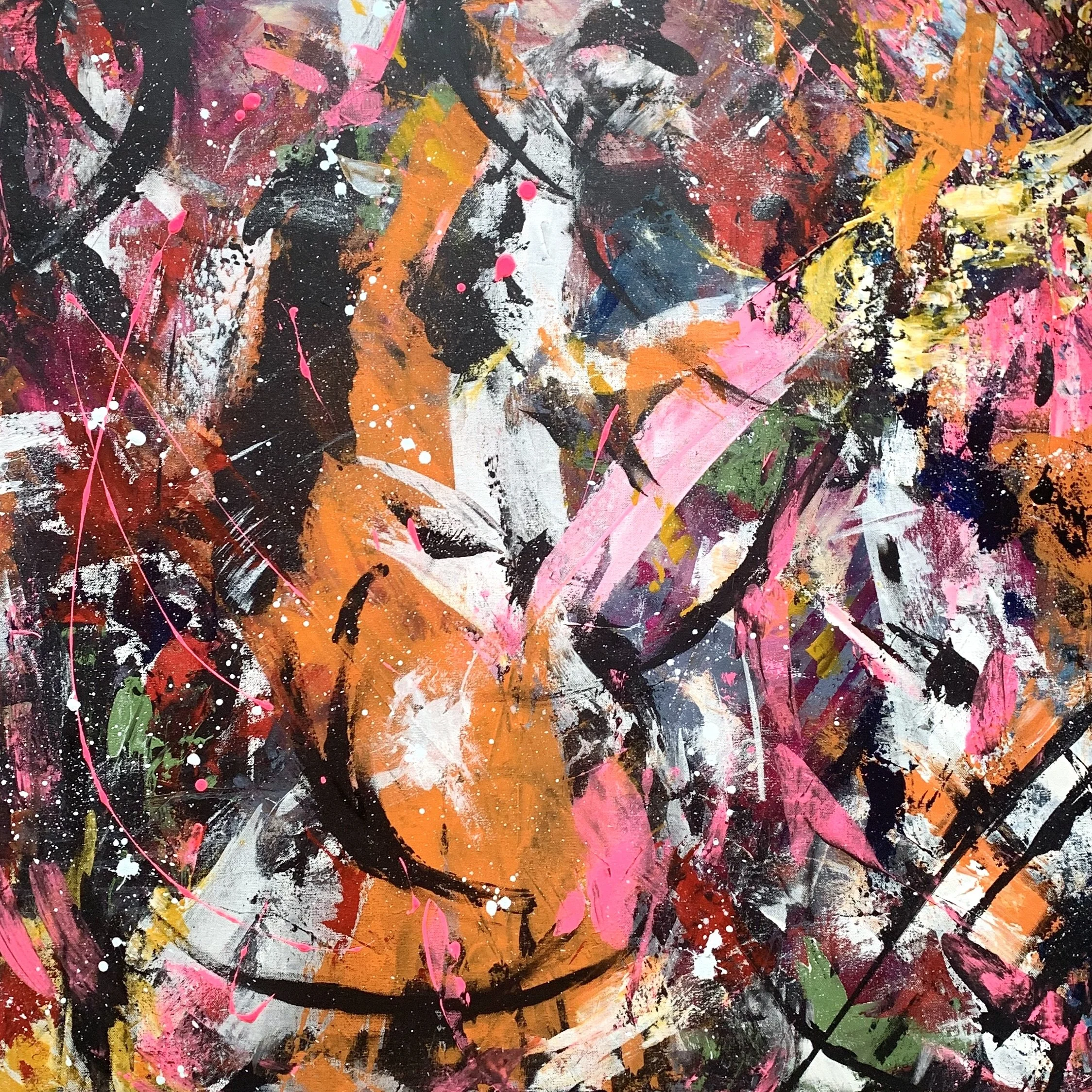 In addition to these large scale abstract portraits, which are done by commission only, I also work on personal series and stand alone original pieces. Painting has served as a safe space, an escape, and an active meditation for me since the very first time I put brush to canvas. I have learned over the years that I find the greatest peace and clarity in working with my hands. I while away my happiest hours cooking, boxing, and painting, and the act of creation is at the center of each of them.